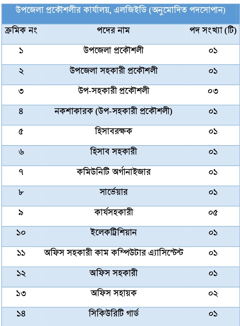 Organogram of Office of the Upazila Engineer, LGED